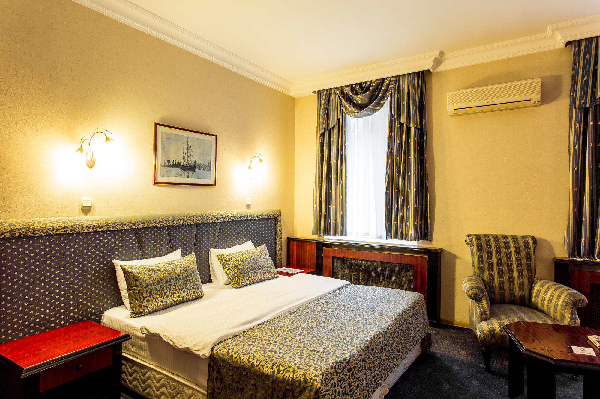 Номер (16 м.кв) с большой кроватью и отдельным санузлом. Доплата за второго человека - 4 000 тенге