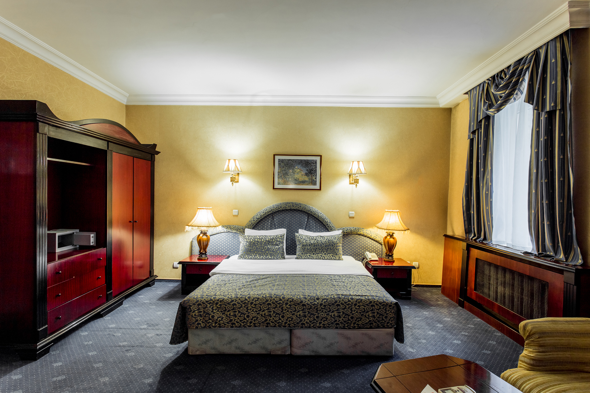 Номер (22 м. кв.) с одной большой или двумя раздельными кроватями и отдельным санузлом.